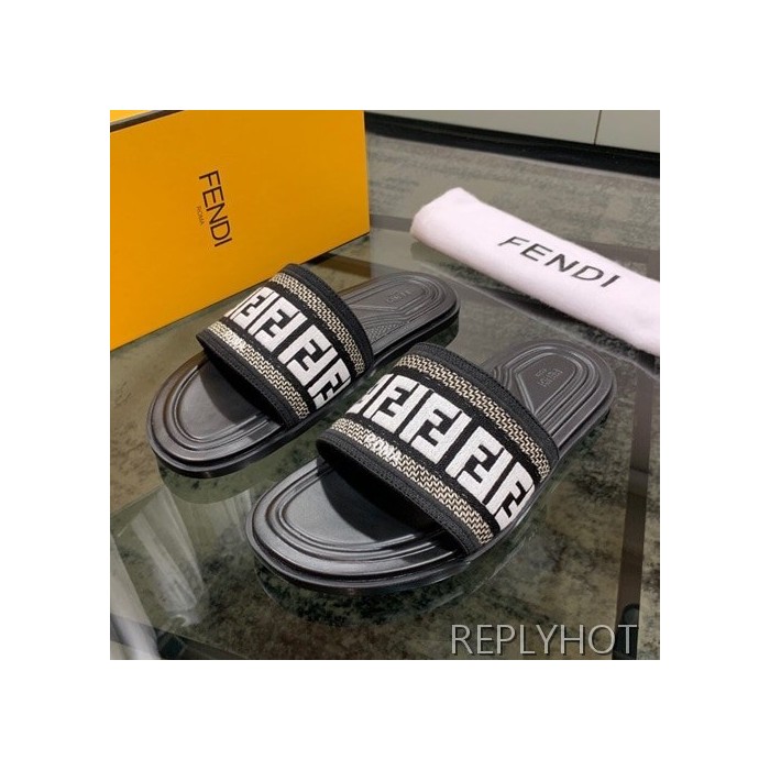 Fendi 2020 Mens Leather & Knit Slipper