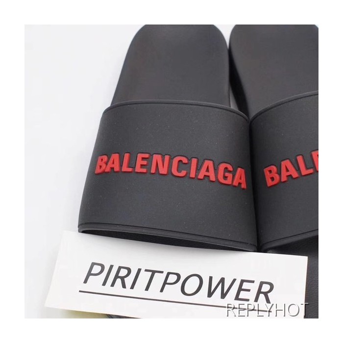 발렌시아가 2020 엠보로고 비치샌들 블랙&레드