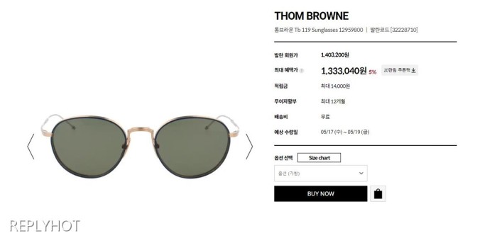 톰브라운 TB 119 선글라스(골드) > 선글라스