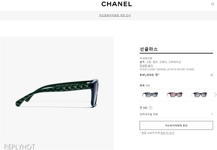 샤넬 CC 퀄팅 스퀘어 선글라스5484(블랙) > 샤넬