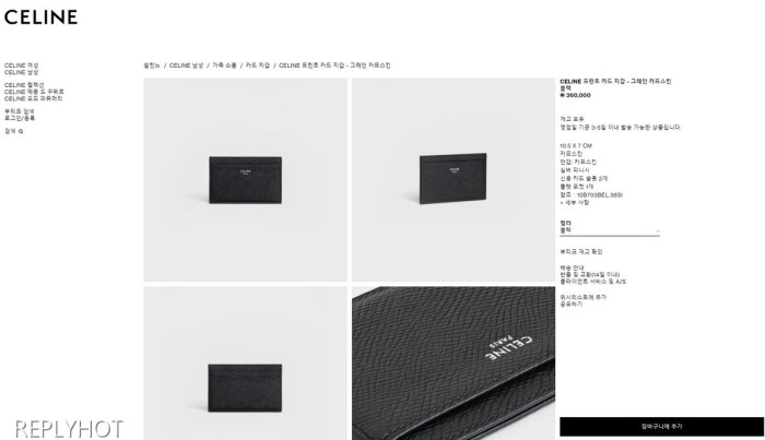 셀린느 옴므 풀그레인 레더 카드 홀더 지갑 (블랙) > 셀린느