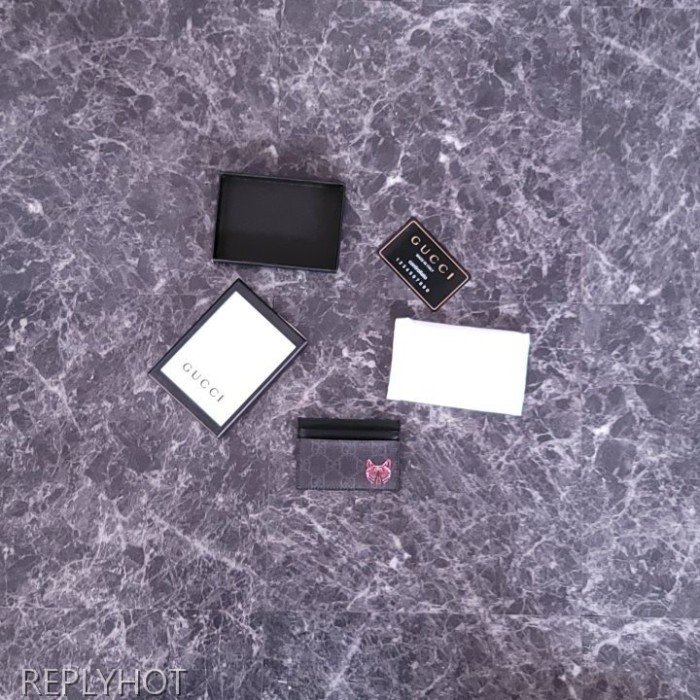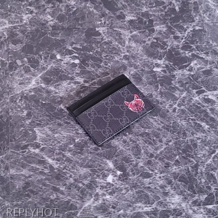 구찌 GG수프림 울프 프린트 카드지갑 블랙