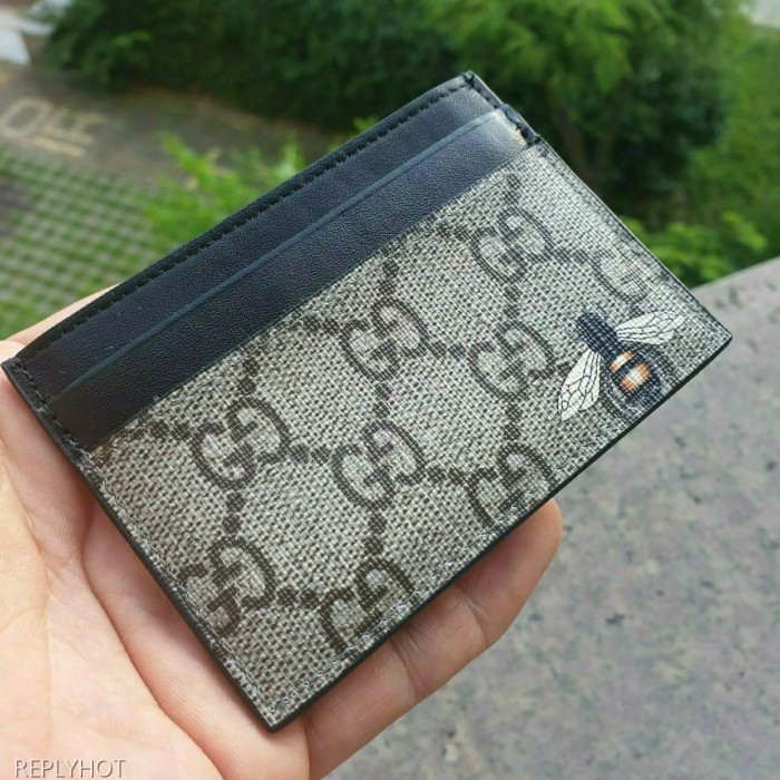 구찌 GG수프림 꿀벌 프린트 카드지갑 브라운