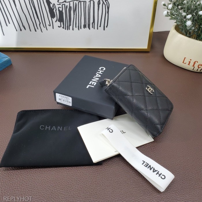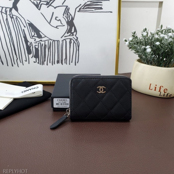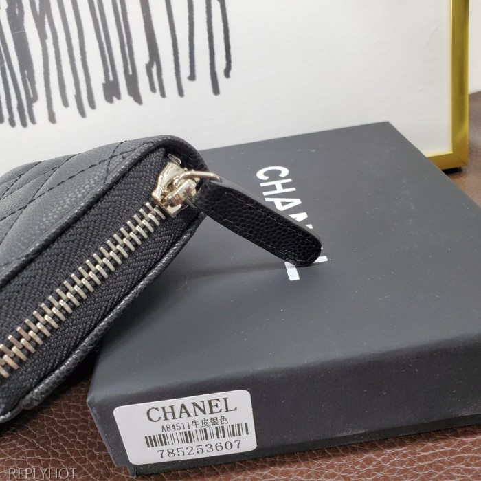 • 샤넬 캐비어 블랙 은장 지갑 A84511