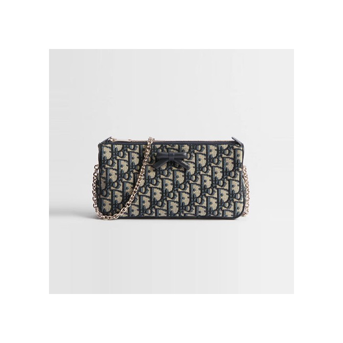 • 디올 오블리크 보우 체인 클러치 베이지/블루