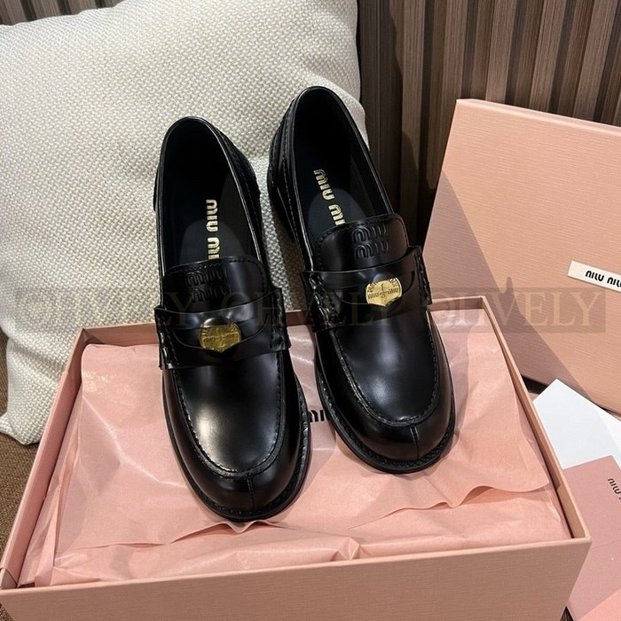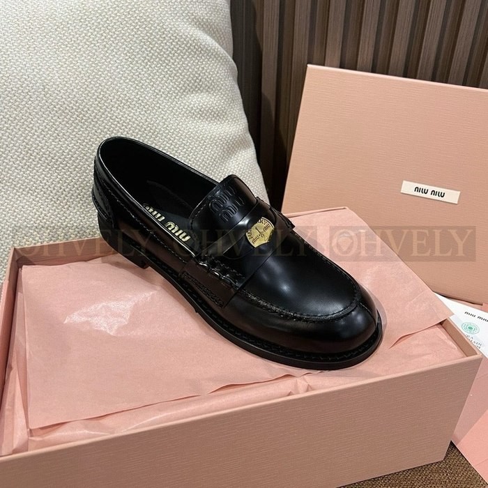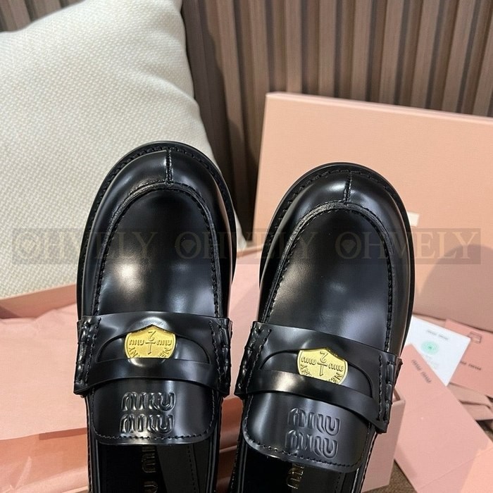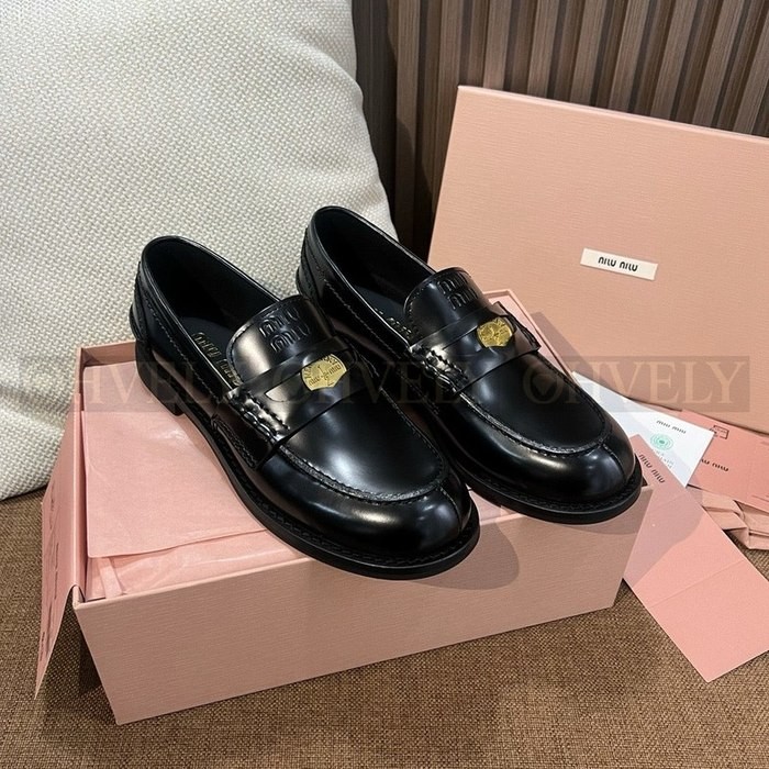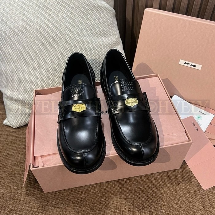 • 미우미우 브러쉬드 가죽 페니 로퍼