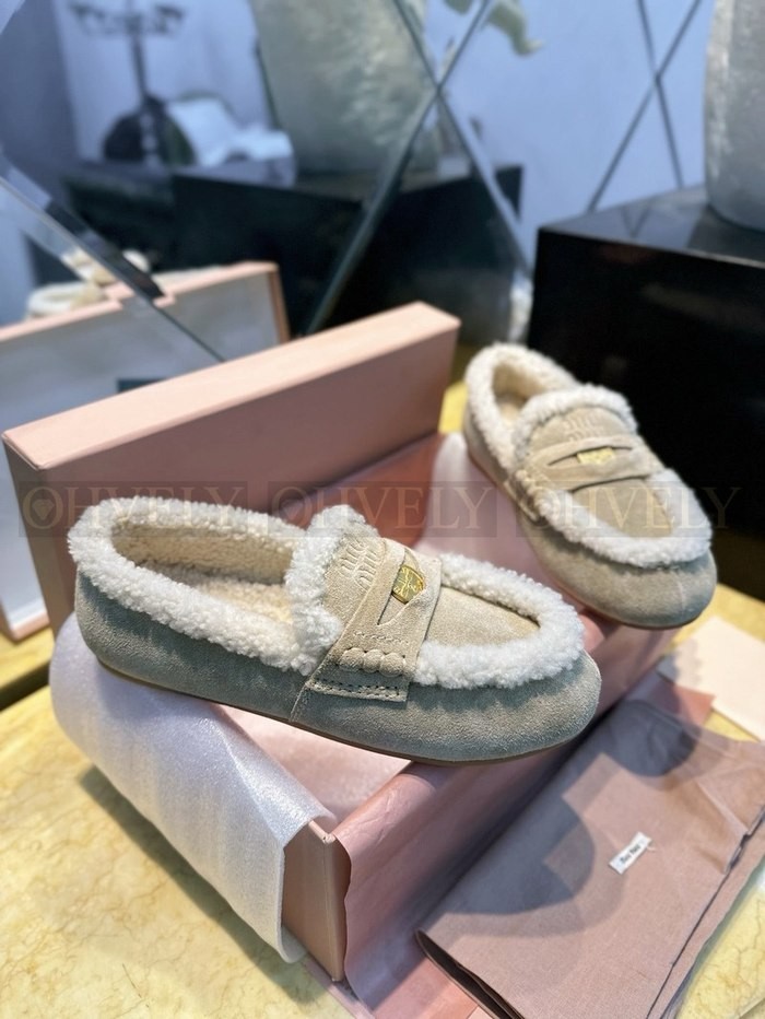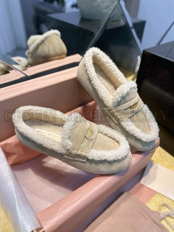미우미우 시어링 스웨이드 로퍼