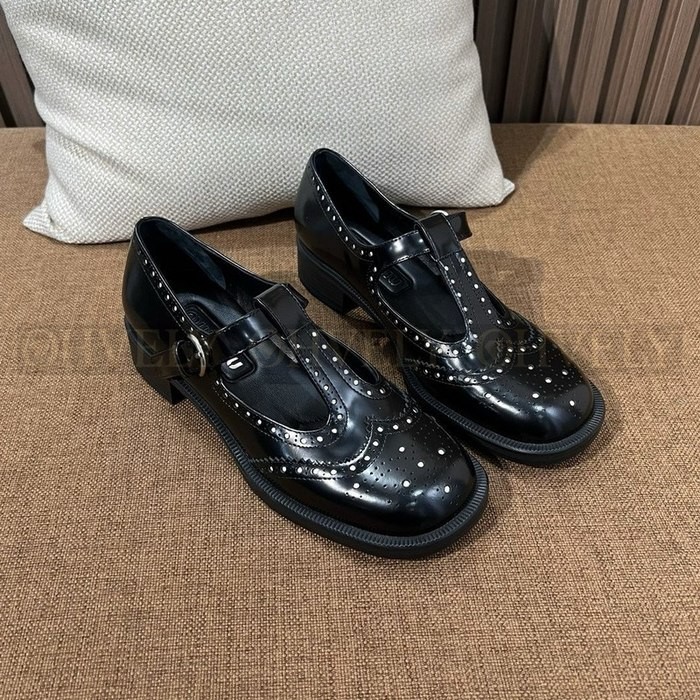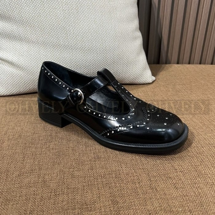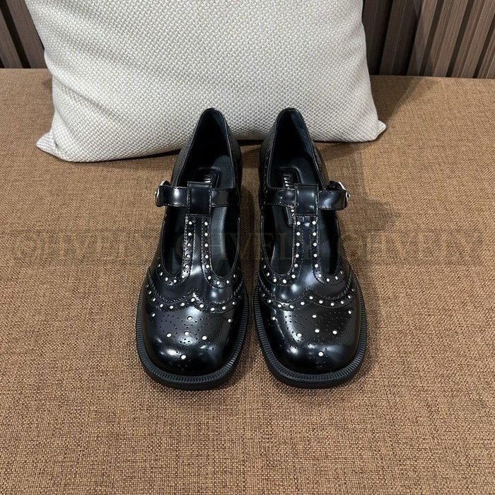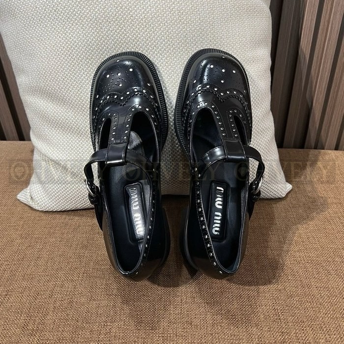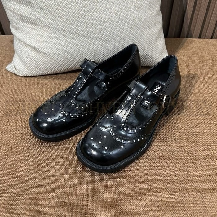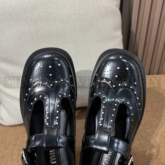 미우미우 브러쉬드 레더 티 스트랩 브로그 슈즈