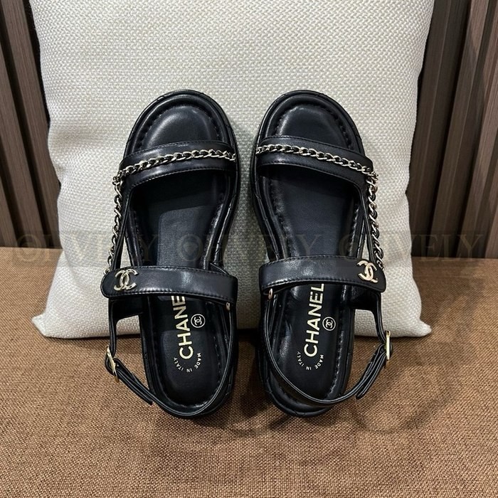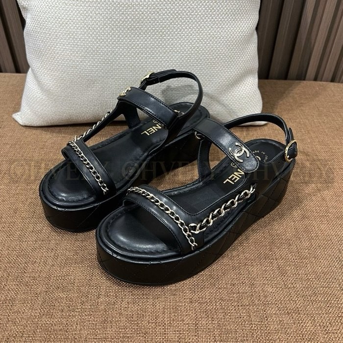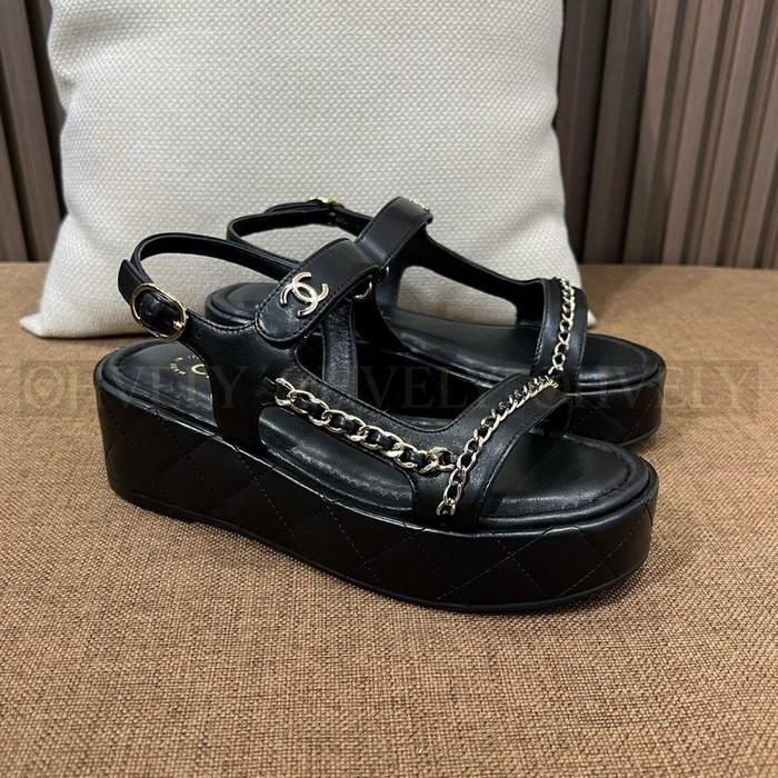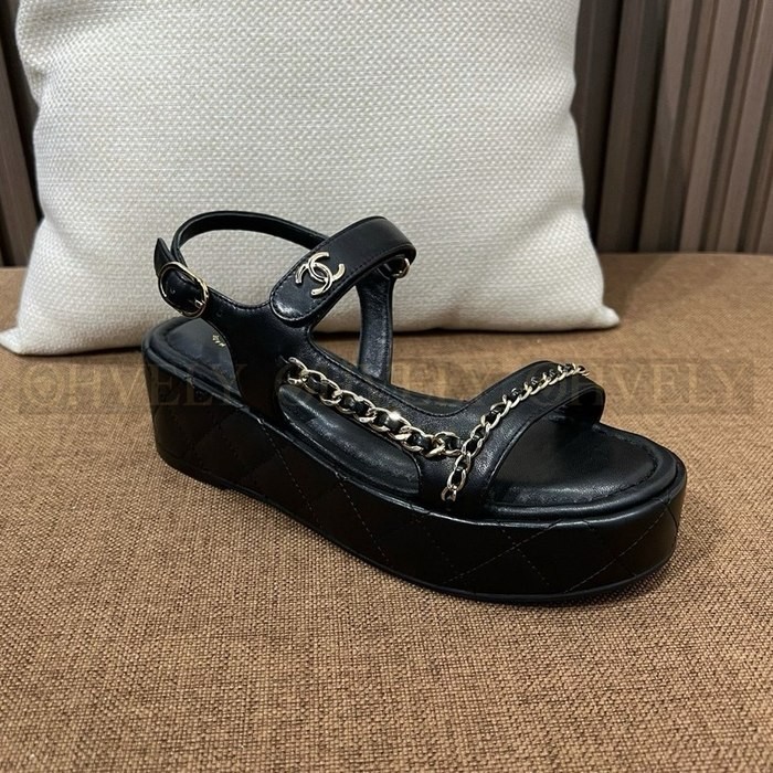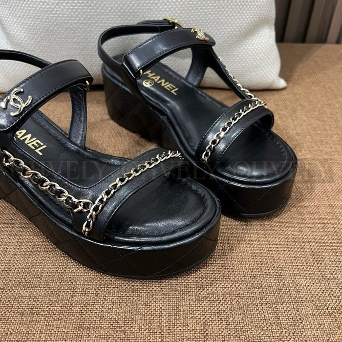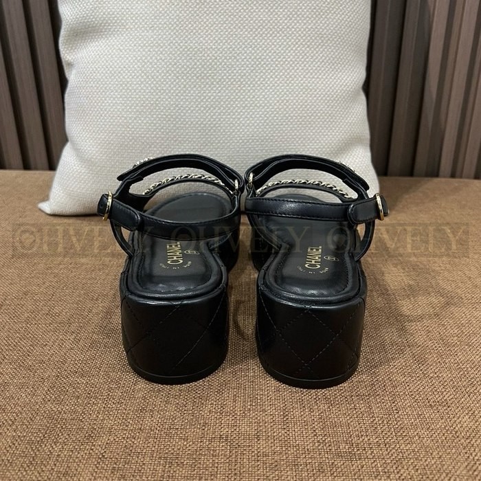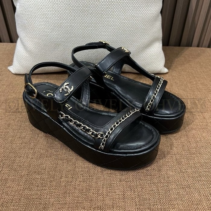 샤넬 퀄팅 웨지 체인 스트랩 샌들