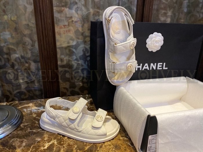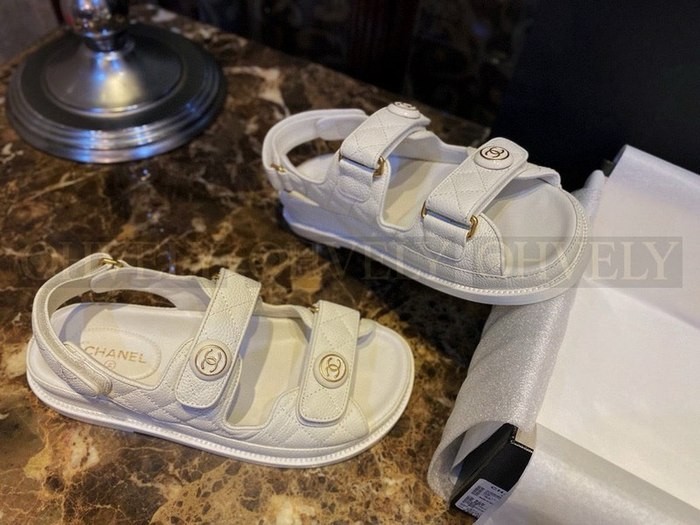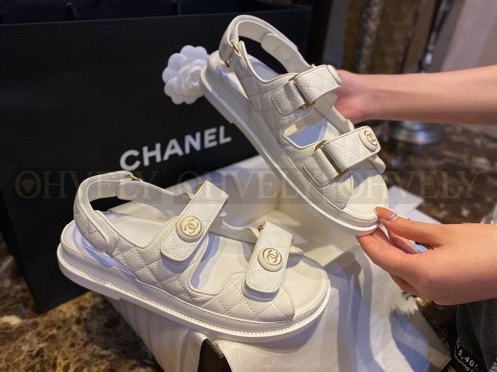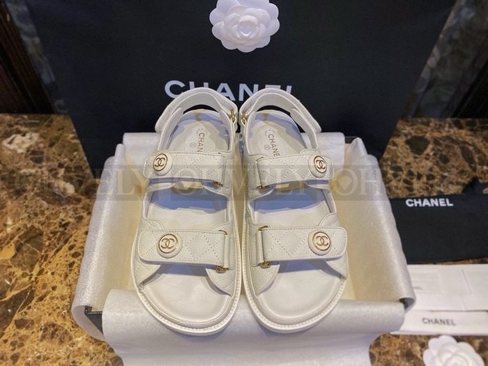샤넬 CC 버튼 벨크로 샌들 캐비어 > 샤넬