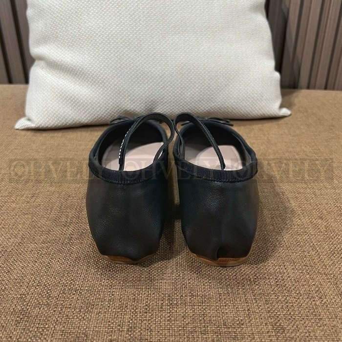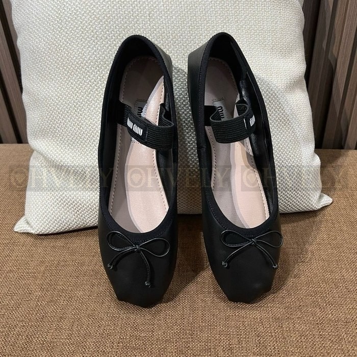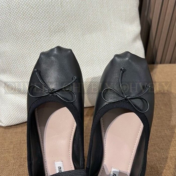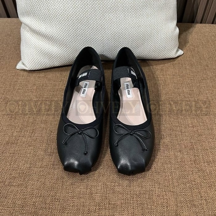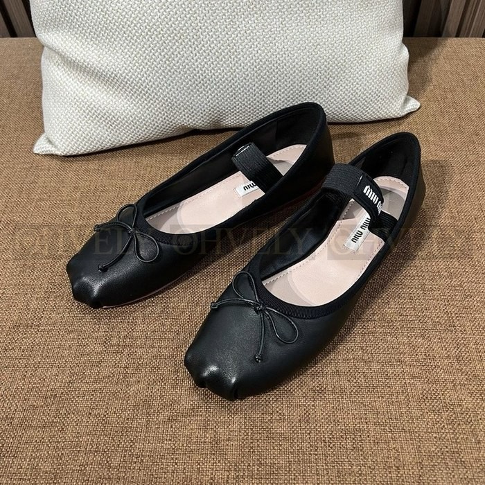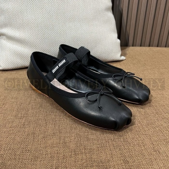 미우미우 로고 스트랩 레더 발레리나 플랫 슈즈