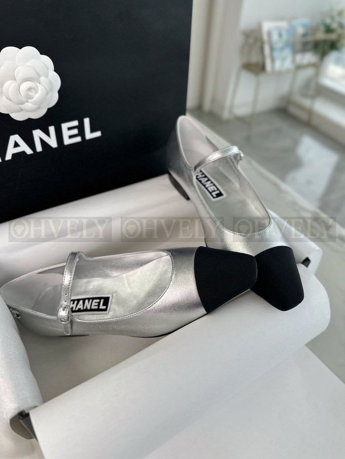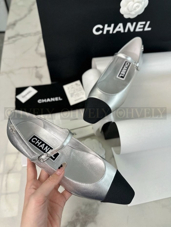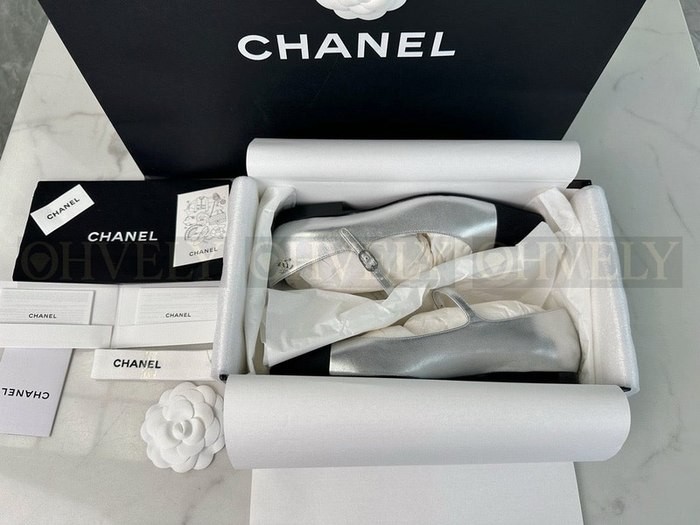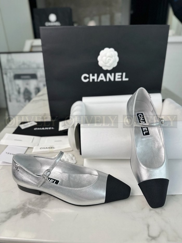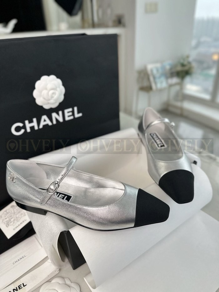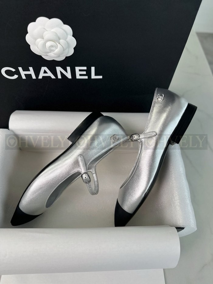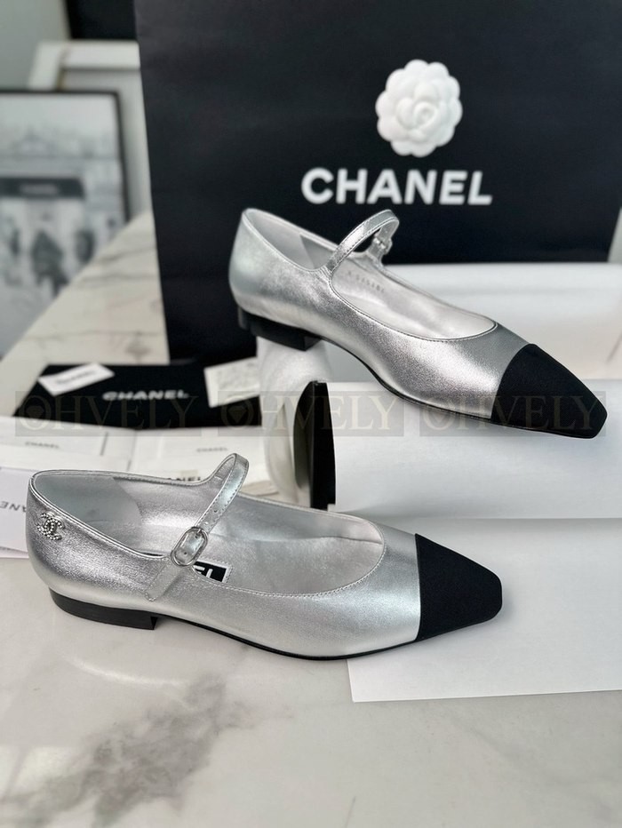 샤넬 실버 메리제인 플랫
