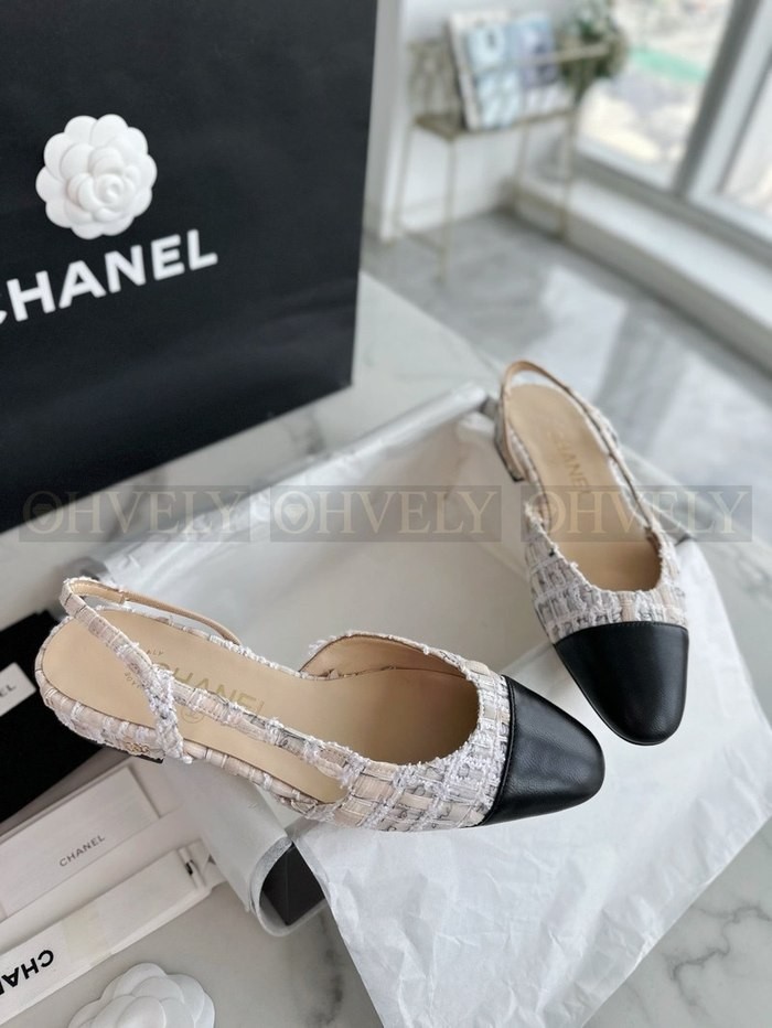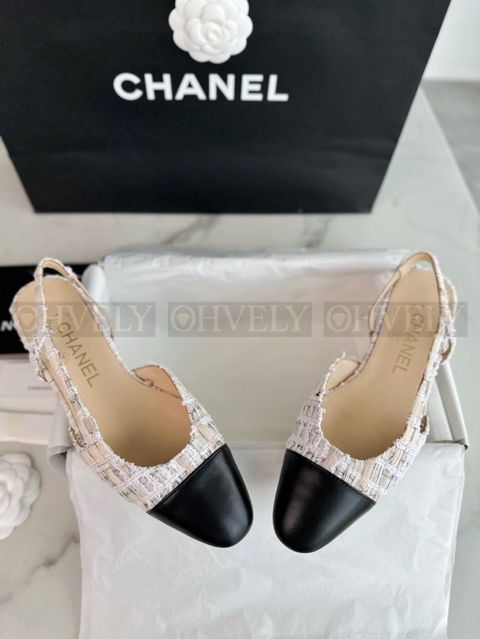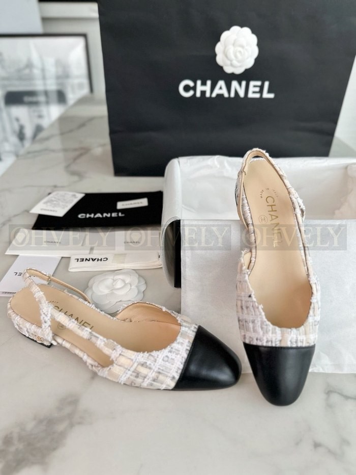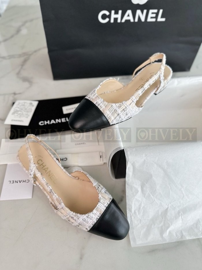 샤넬 트위드 슬링백 플랫