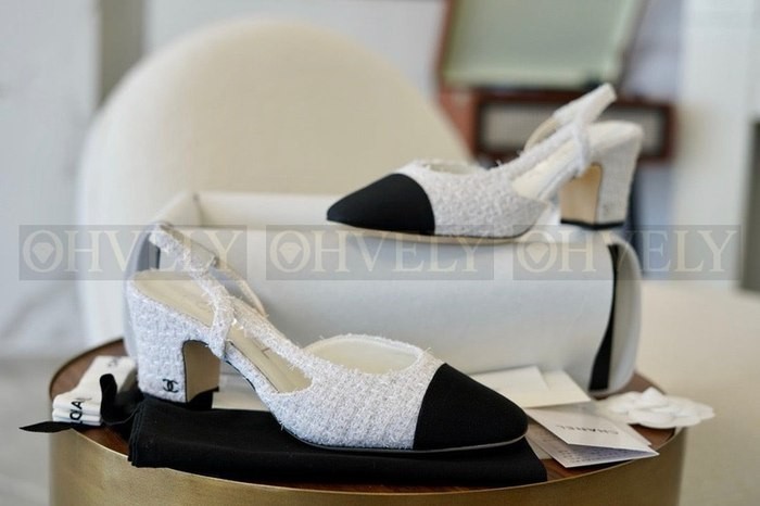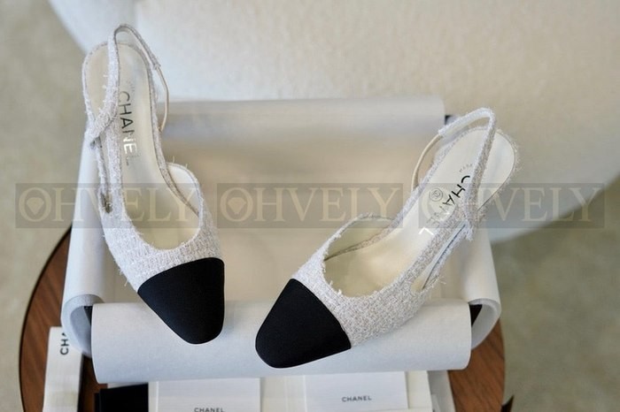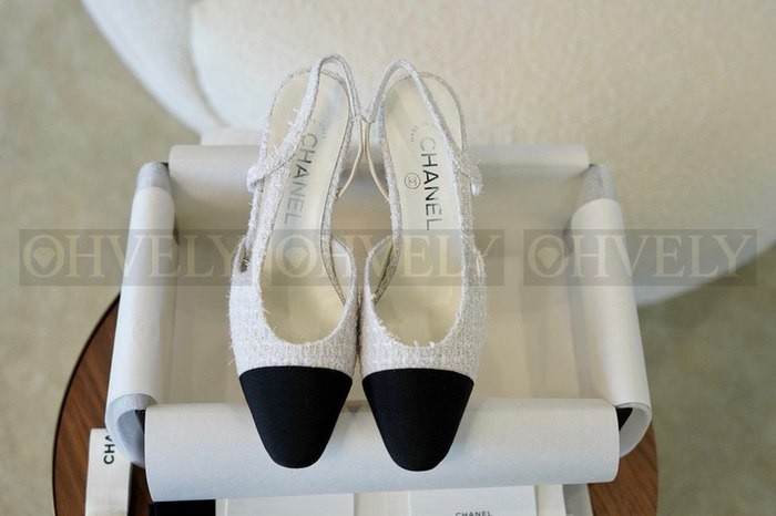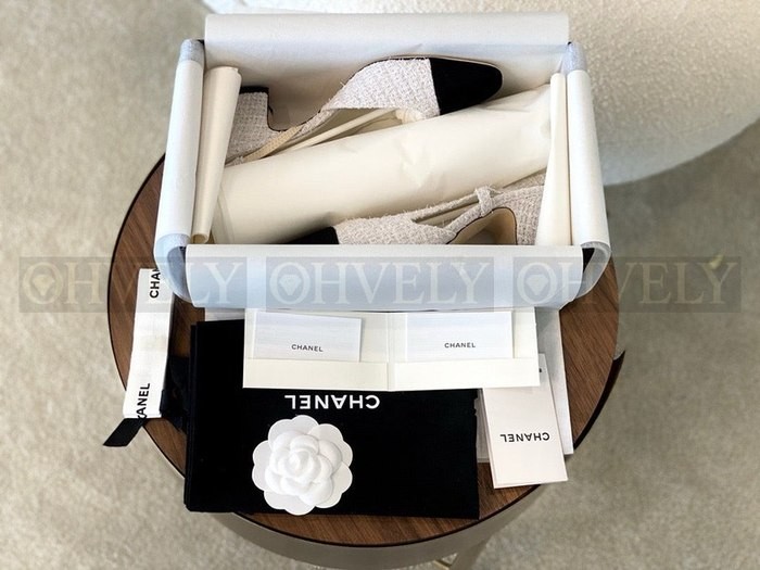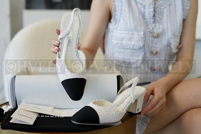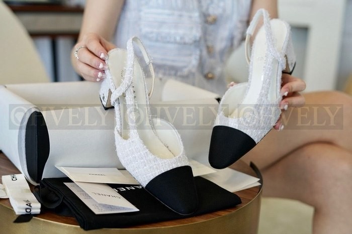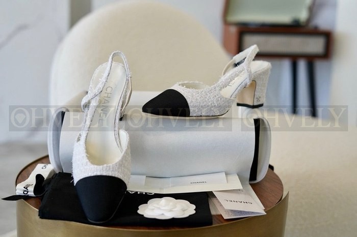 샤넬 트위트 슬링백 미드힐 > 샤넬