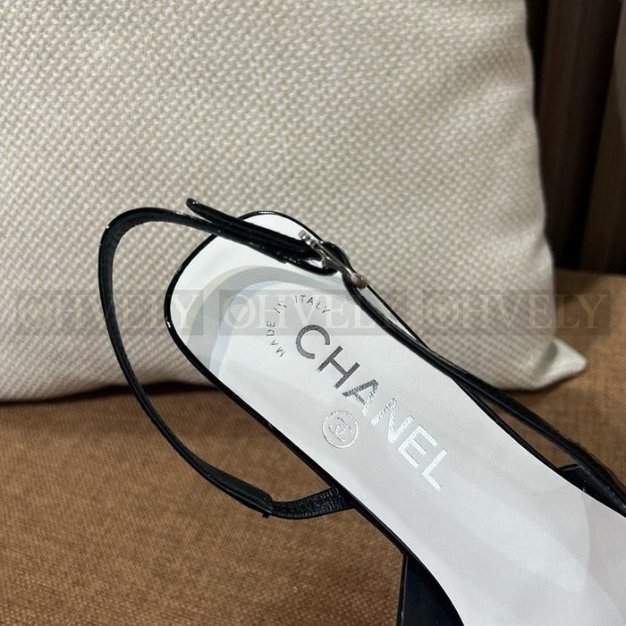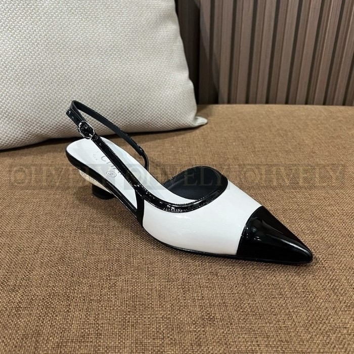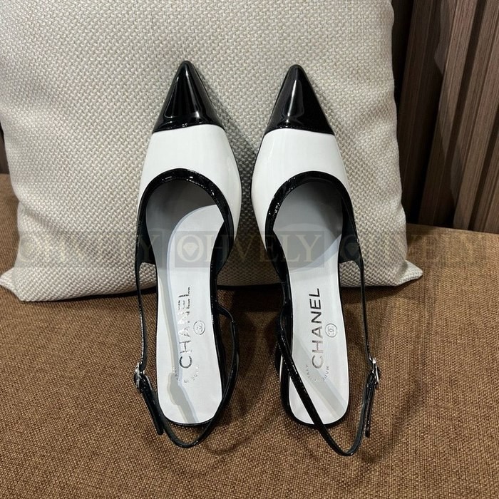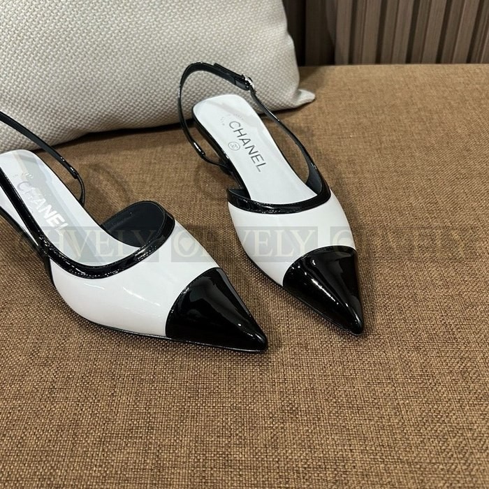 샤넬 포인티드 토 슬링백 펌프스