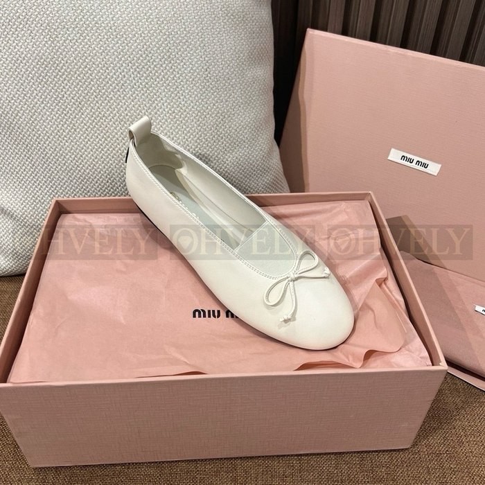 미우미우 엘랑 나파 가죽 발레리나 슈즈
