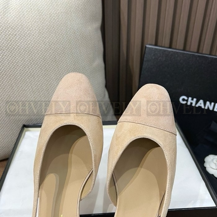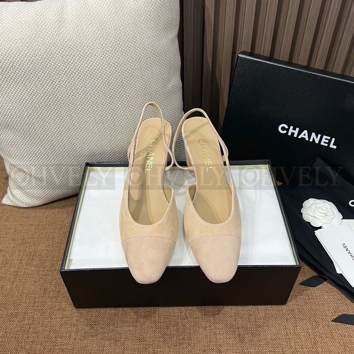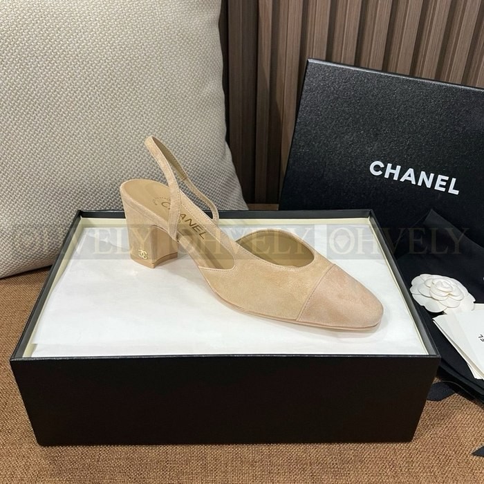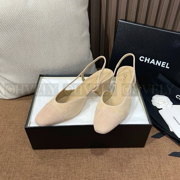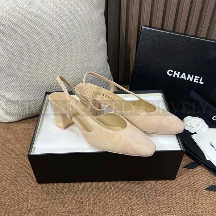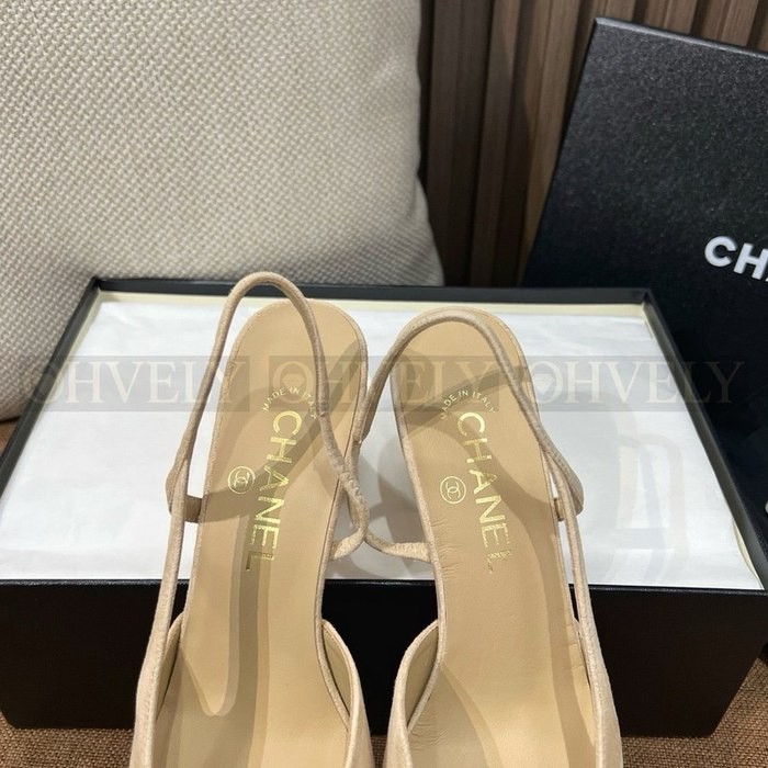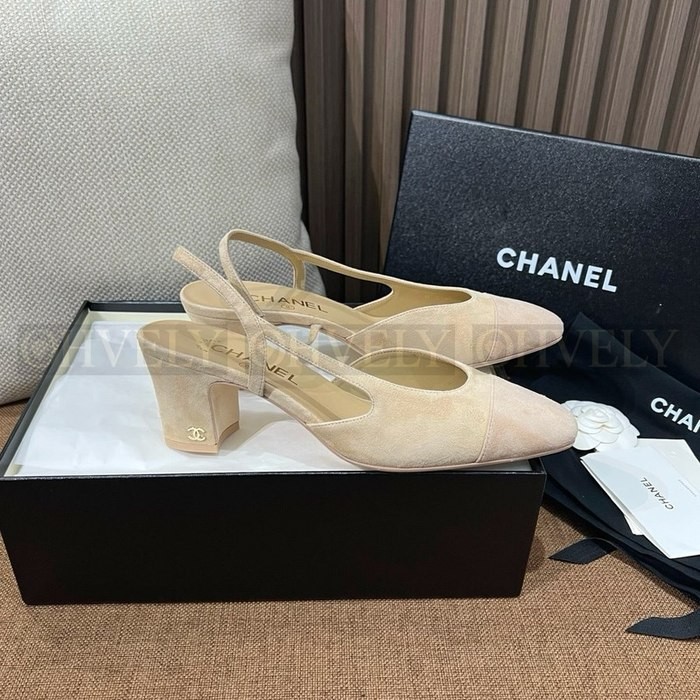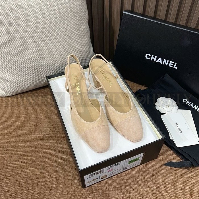 샤넬 스웨이드 슬링백 미드힐