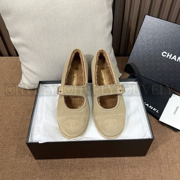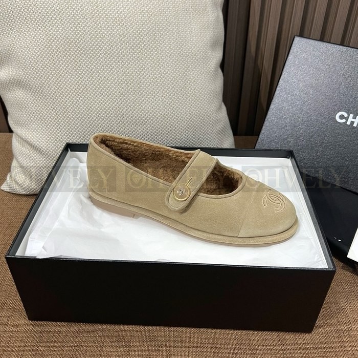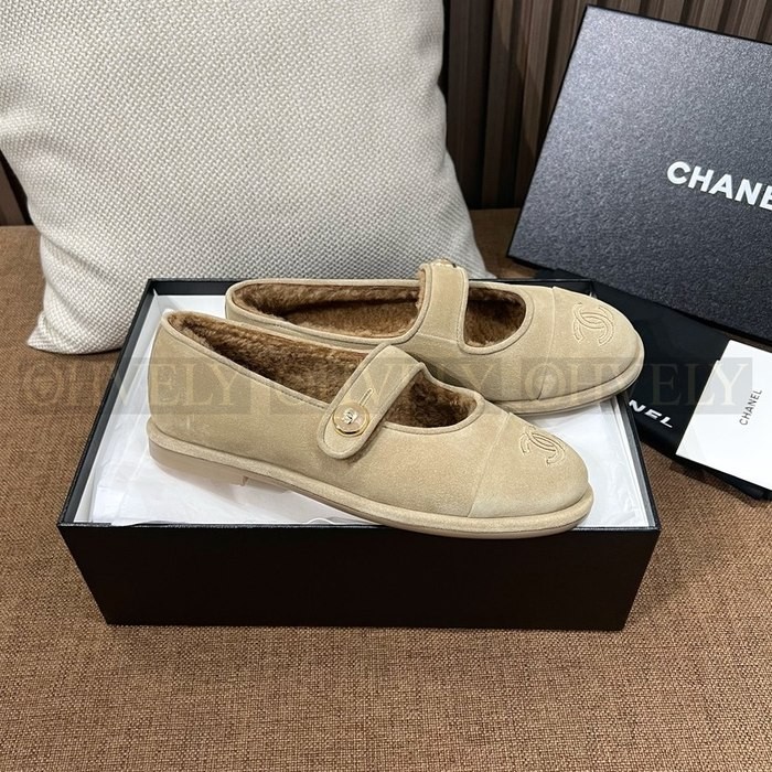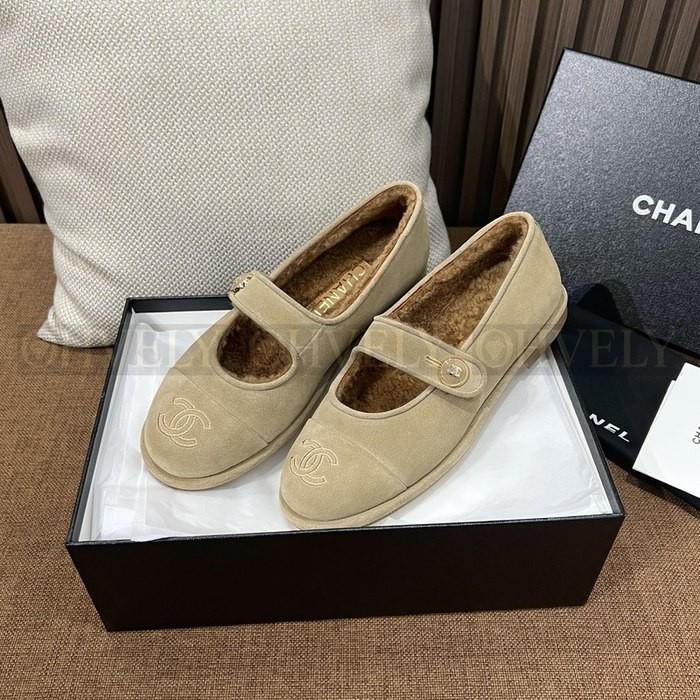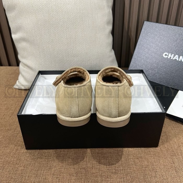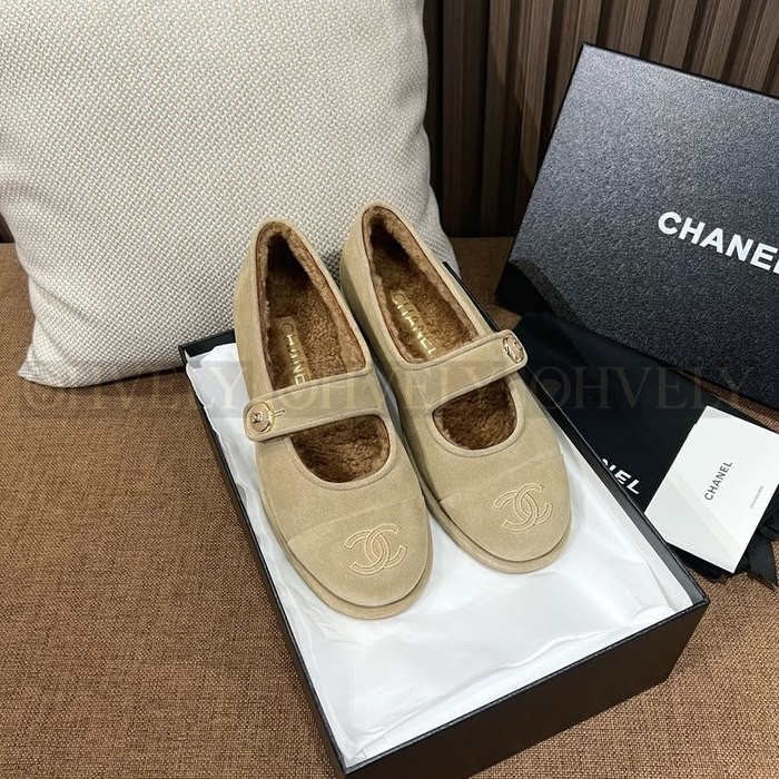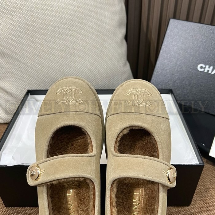 샤넬 시어링 메리제인 스웨이드 테디 퍼 플랫 슈즈