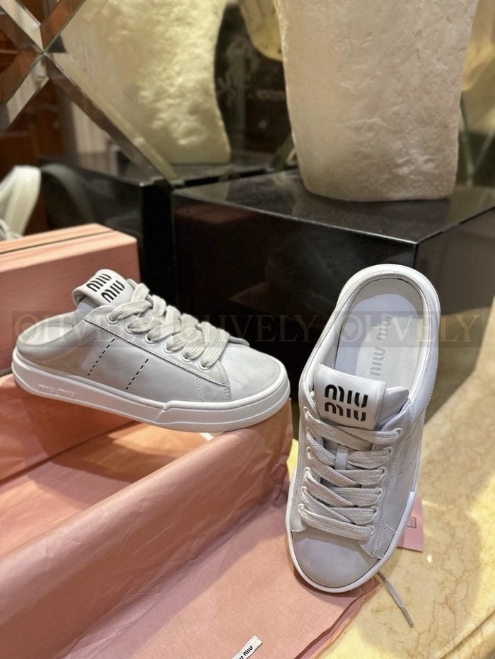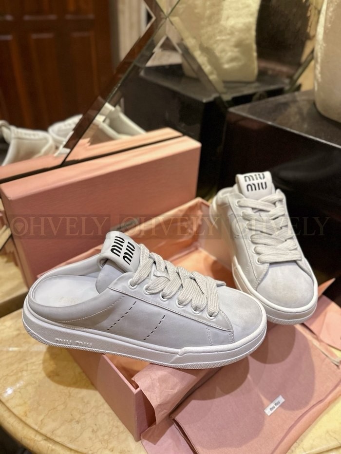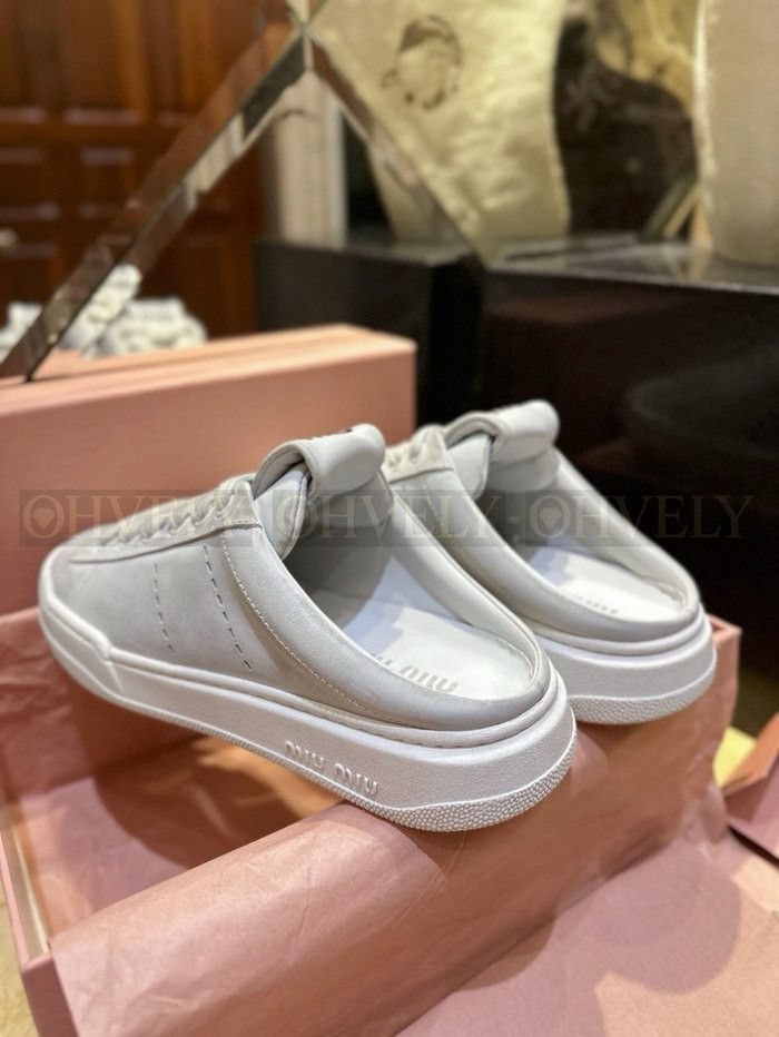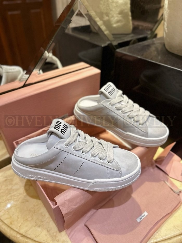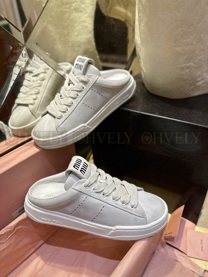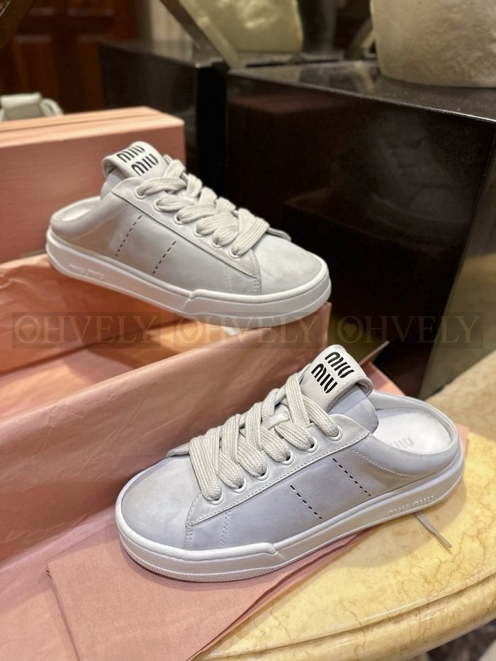 미우미우 블리치드 가죽 스니커즈 뮬
