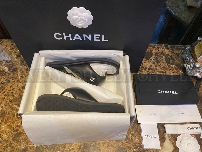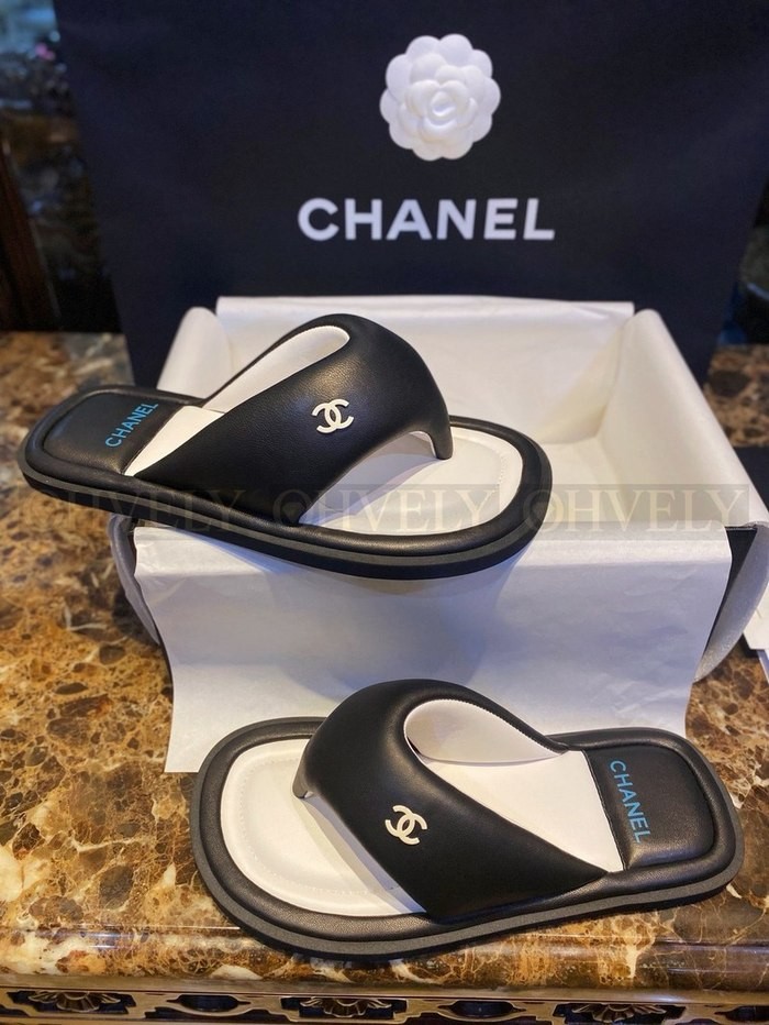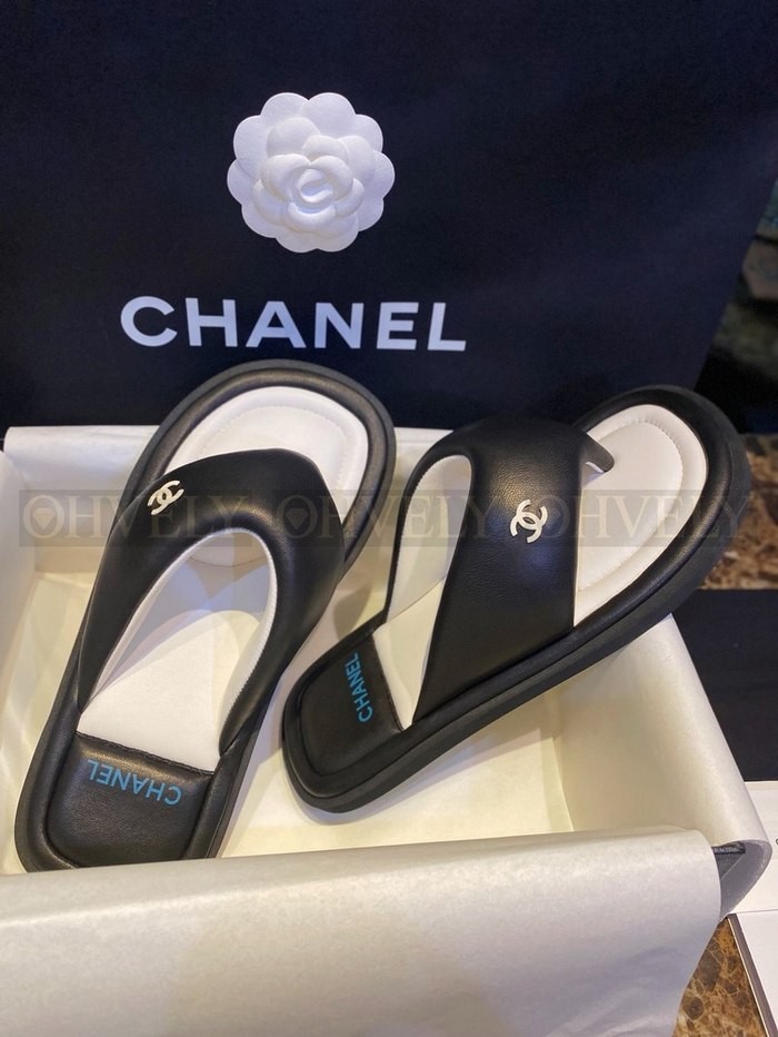 샤넬 CC 로고 램스킨 플립플랍 > 샤넬