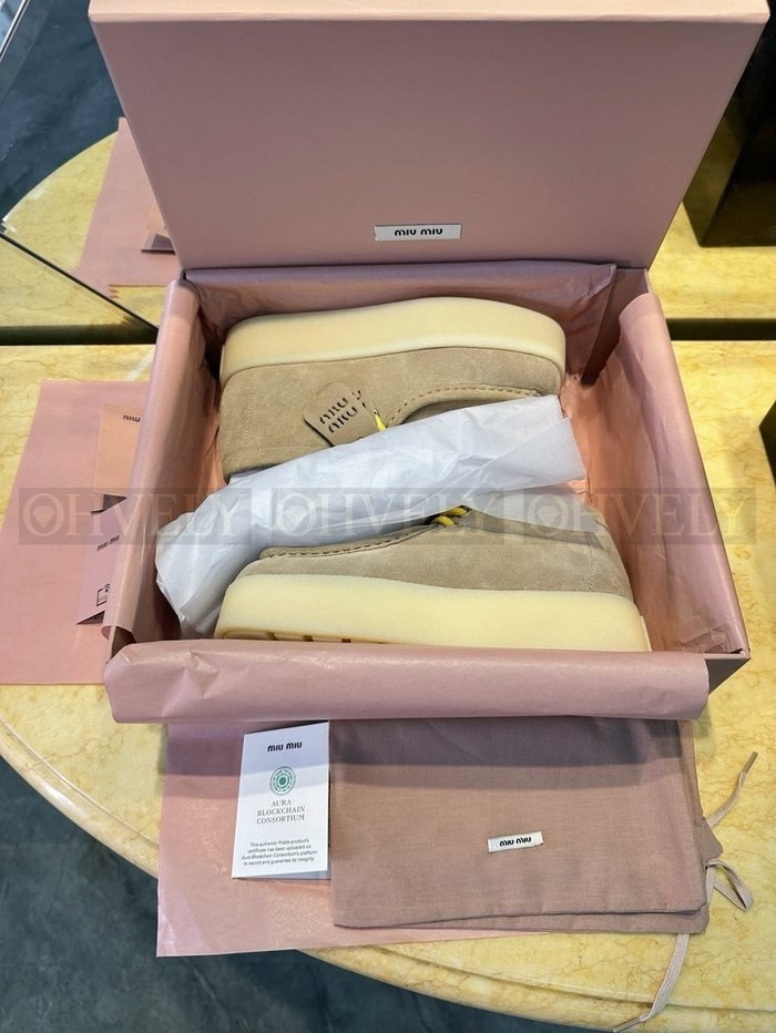 미우미우 스터드 스트랩 모헤어 부츠